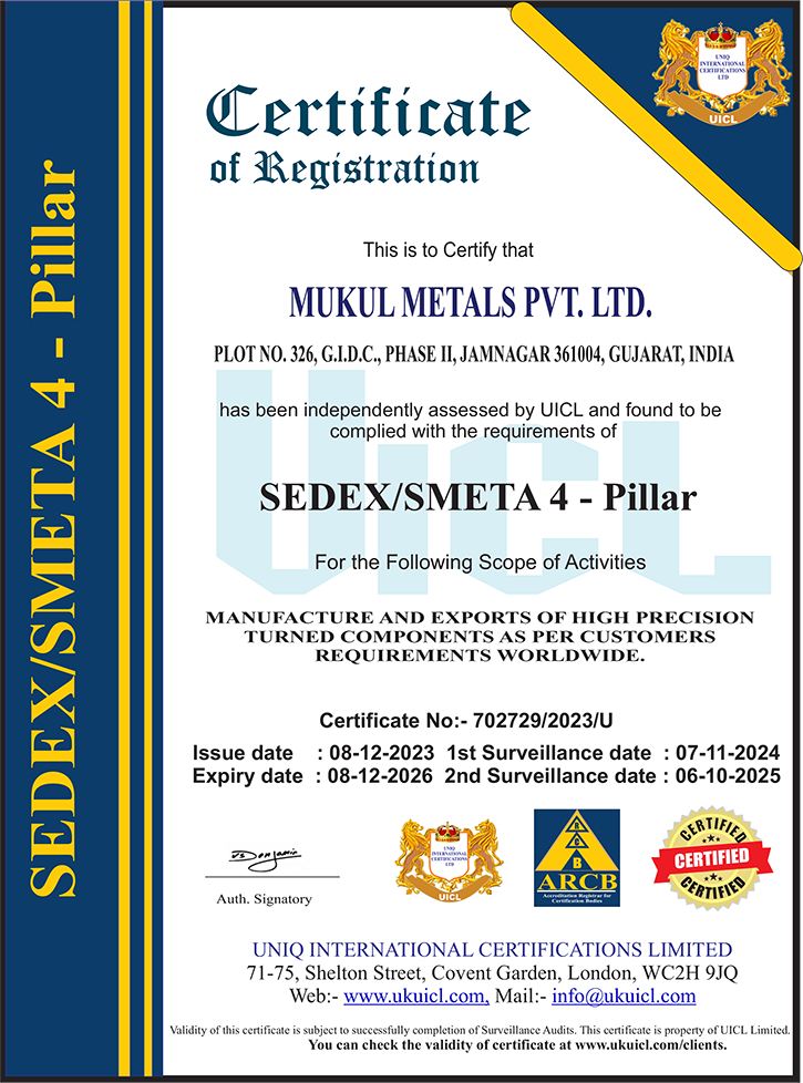 Mukul Metals is proud to be an ISO 9001:2015,14001:2015 and 45001:2018 certified company, adhering to international standards that define requirements for a robust quality management system (QMS). Our adherence to this standard demonstrates our commitment to consistently providing products and services that fulfil both customer and regulatory demands.